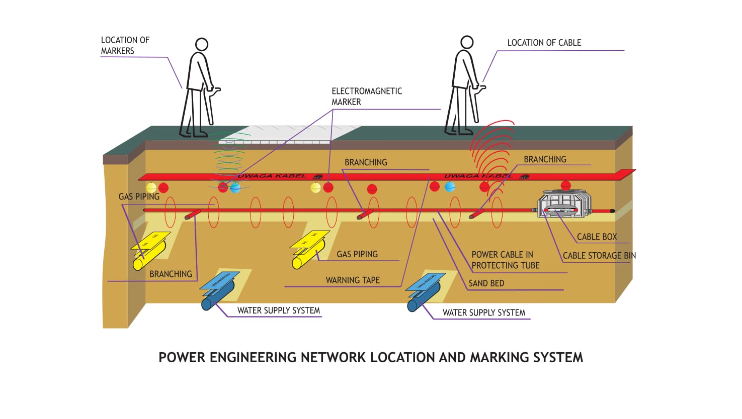 In the case of underground power networks, appropriate marking with warning tapes is of particular importance, due to the enormous risk to human life in the event of damaging a cable. Tapes for marking underground power networks are produced in two colors: